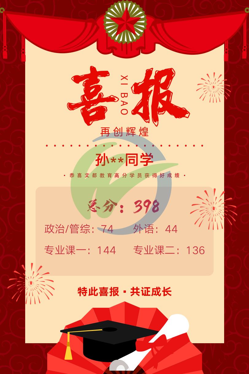 考研初試成績(jī)已經(jīng)出來啦,文都學(xué)子喜報(bào)頻傳,文都老師快被大家的私信給淹沒啦,數(shù)三滿分的答卷,藝考滿分的手繪卷,管綜的高分,不得不說這屆學(xué)員真的太優(yōu)秀了!所有的付出和努力,吃過的苦,熬過的夜都作數(shù),不必羨慕別人的分?jǐn)?shù),從最細(xì)微處做起,明年的高分榜一定有你。接下來一起看看我們文都考研優(yōu)秀的學(xué)子的初試捷報(bào)吧。