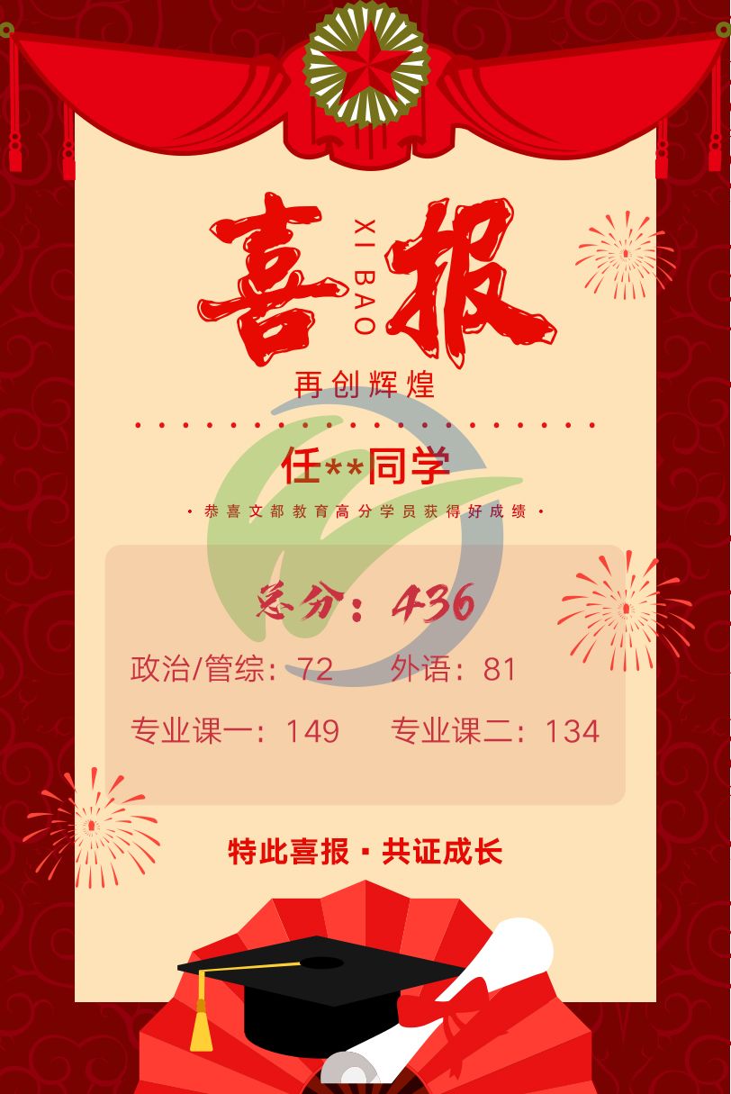 考研初試成績(jī)已經(jīng)出來啦,文都學(xué)子喜報(bào)頻傳,文都老師快被大家的私信給淹沒啦,數(shù)三滿分的答卷,藝考滿分的手繪卷,管綜的高分,不得不說這屆學(xué)員真的太優(yōu)秀了!所有的付出和努力,吃過的苦,熬過的夜都作數(shù),不必羨慕別人的分?jǐn)?shù),從最細(xì)微處做起,明年的高分榜一定有你。接下來一起看看我們文都考研優(yōu)秀的學(xué)子的初試捷報(bào)吧。