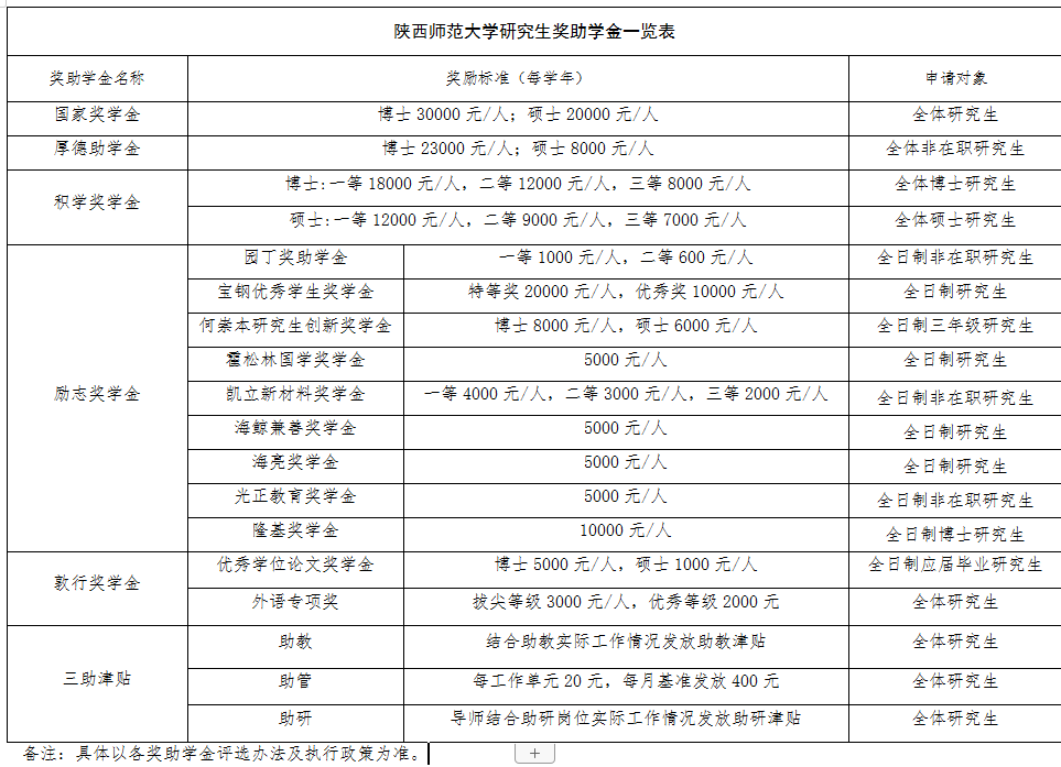 陜西師范大學(xué)研究生獎(jiǎng)助學(xué)金一覽表