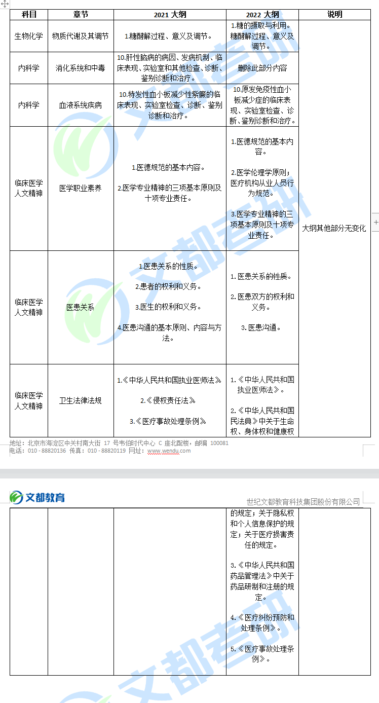 2022西醫綜合考研大綱變動對比表