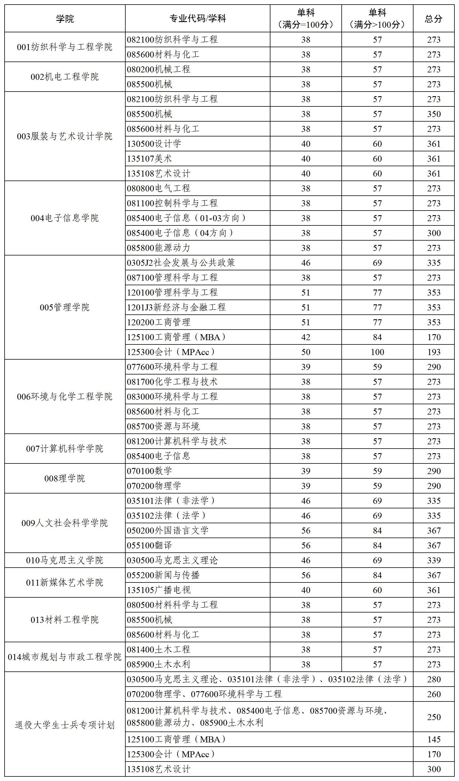 西安工程大學(xué)2022年碩士研究生招生考試復(fù)試分數(shù)線