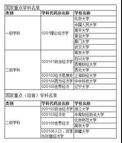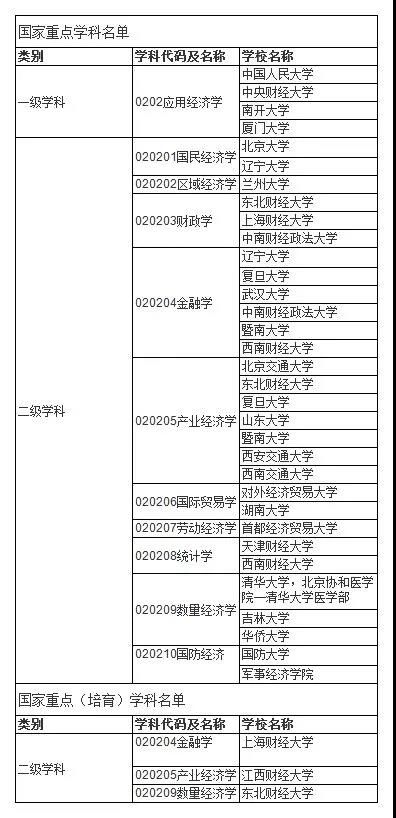下圖依次為應用經濟學和理論經濟學的國家重點學科名單
