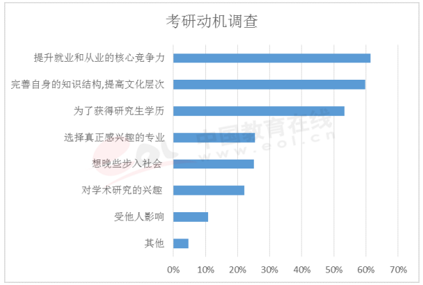 中國(guó)教育在線(xiàn)對(duì)考生考研動(dòng)機(jī)進(jìn)行了調(diào)查,排名第一為提升就業(yè)和從業(yè)的競(jìng)爭(zhēng)力。考研報(bào)名比例逐年上升,考研難度也隨之上升,選擇一個(gè)好的院校、合適的院校無(wú)形中讓自己就業(yè)更加順利。熱門(mén)院校、當(dāng)?shù)刂雀叩脑盒!⒈緦?zhuān)業(yè)實(shí)力強(qiáng)的院校,畢業(yè)生會(huì)深受用人單位的青睞。